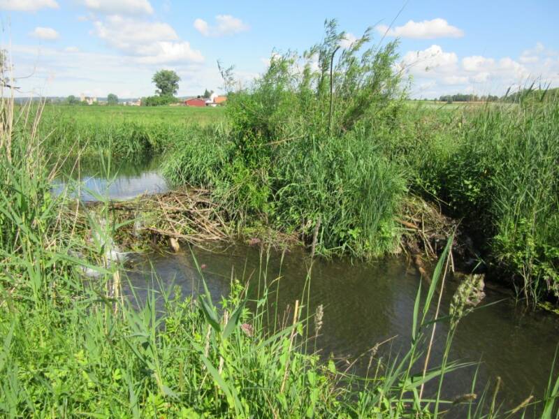 Absolut vorbildlich ist die Renaturierungsmaßnahme des Schuttermäanders Richtung Wolkertshofen - im Hintergrund sieht man die Aumühle und die Nassenfelser Burg. Im Vordergrund hat gerade ein fleißiger Bieber einen Staudamm gebaut. Leider werden diese immer wieder zerstört, weil manche Landwirte die Vernässung ihrer Wiesen fürchten.