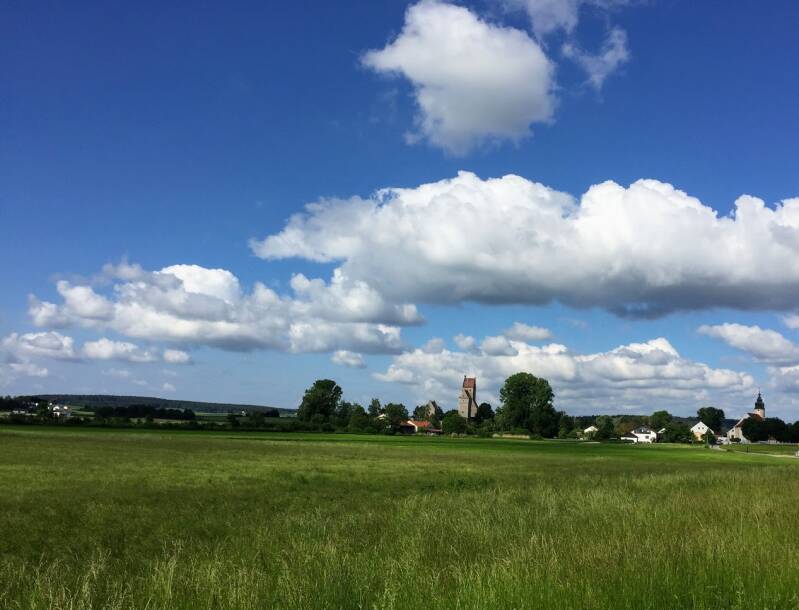 Der Blick geht hier von Wolkertshofen über das Tal bis hin zur Burg. Noch ist das Tal unverbaut. Für die Radfahrer auf dem überregionalen Radweg ist es fast eine durchweg schöne Strecke...